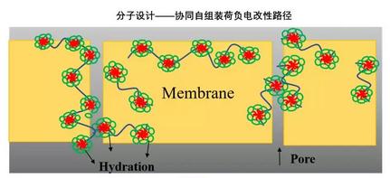 通過分子設(shè)計,采用雙荷負電(兩親)嵌段共聚物自組裝形成的豐富而有序的拓撲結(jié)構(gòu),對常規(guī)UF膜進行協(xié)同自組裝荷負電改性,最終制得高度有序的不對稱均孔荷負電功能超濾膜。